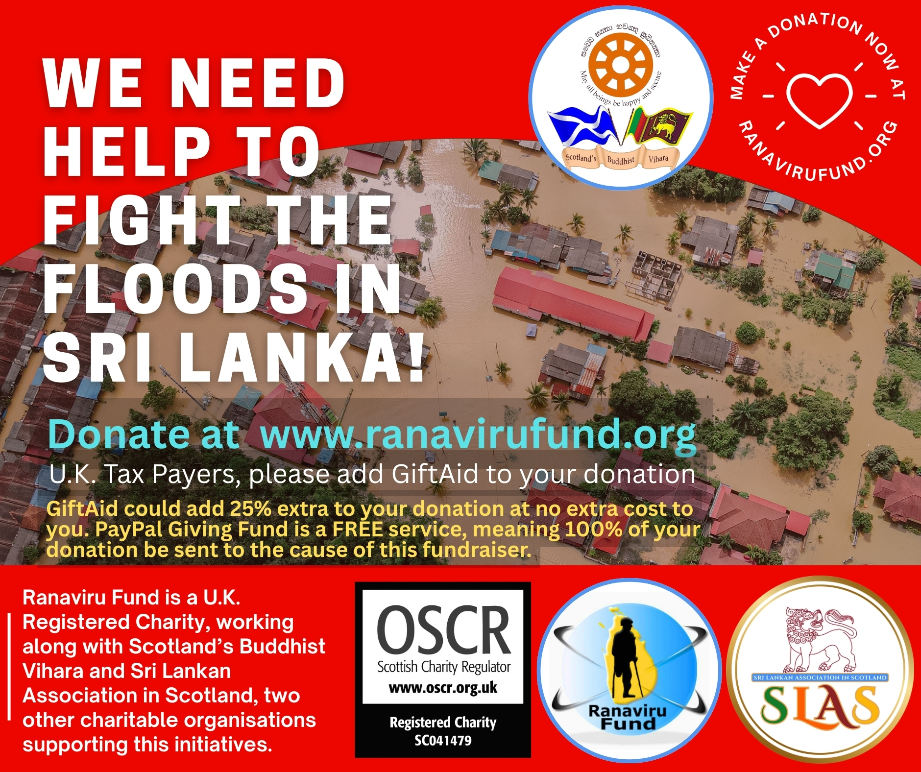 'Ranaviru Fund' and 'Scotland Buddhist Vihara', two Scotland based Charities have been working in Sri Lanka over the years in providing welfare and medical aid for people in need, now also partnered with the Sri Lankan Association in Scotland (www.slascot.org.uk) to provide assistance to the people need assistance to get back to their normal lifestyle.