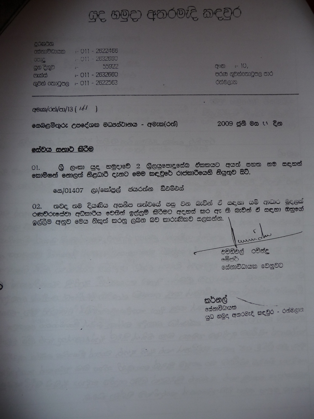 Letter from Army 2 |