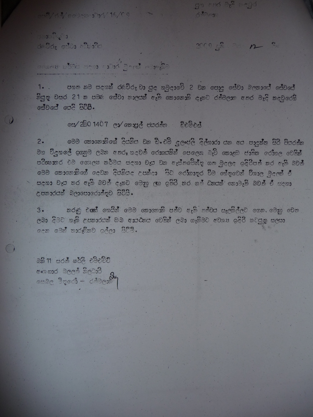 | Father's Service | In Service with SL Army (Lance Corporal) |